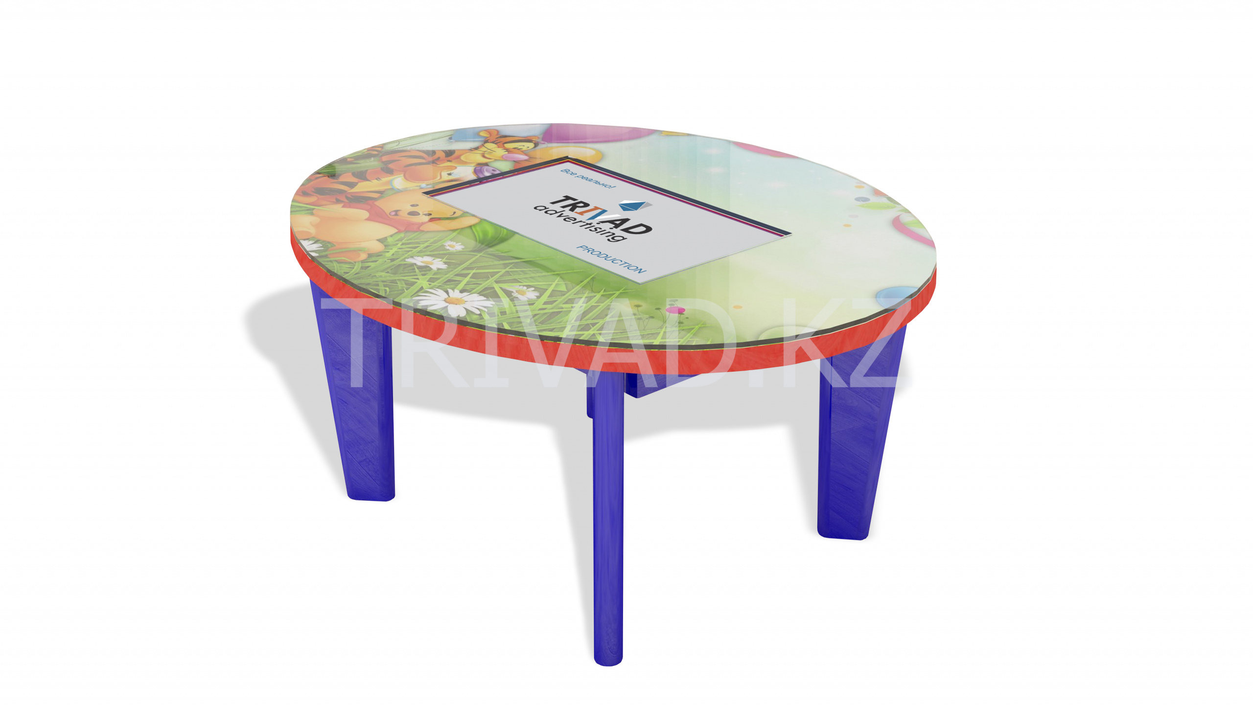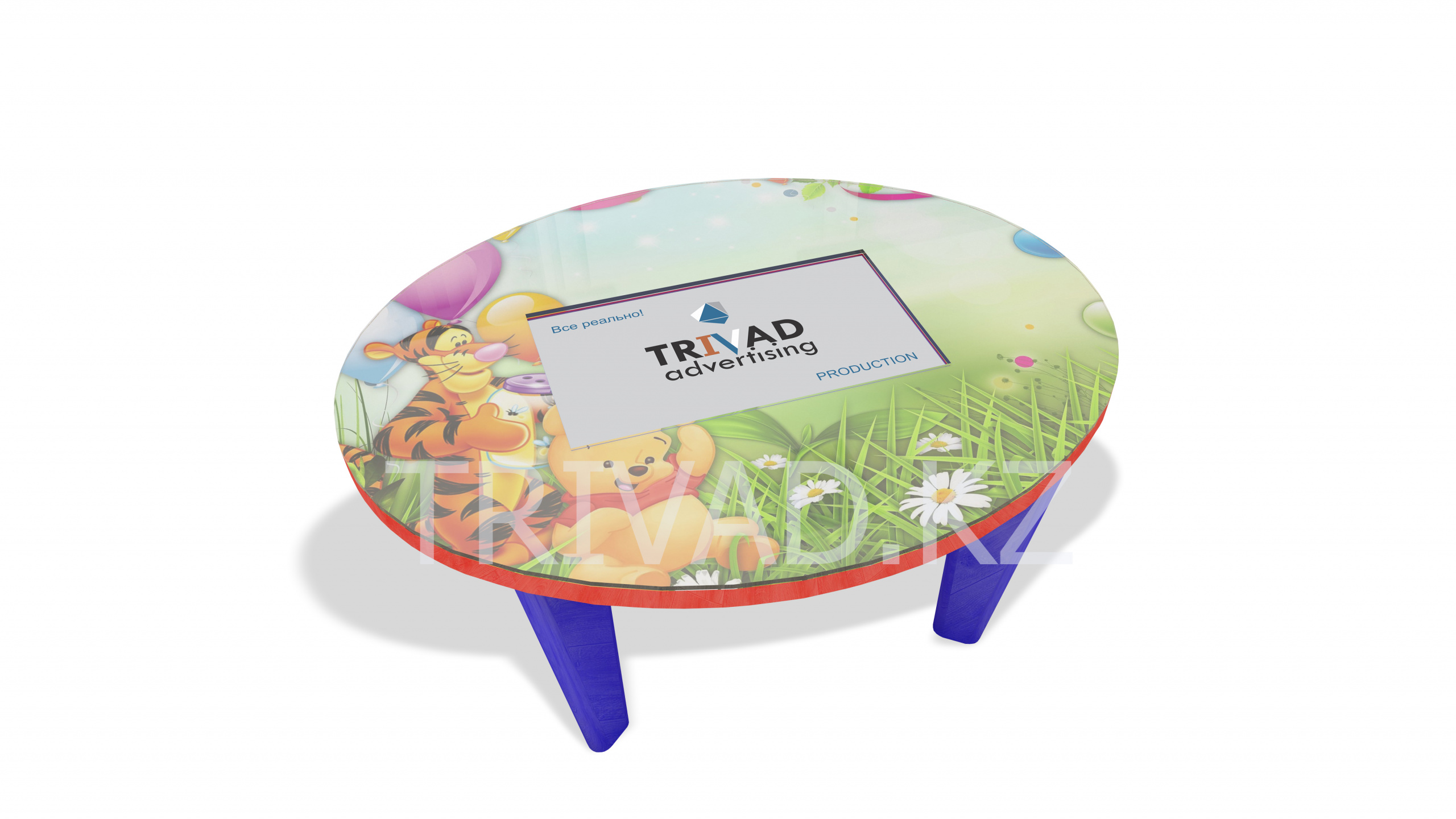 Столешница из ЛДСП с закаткой торцов кромкой ПВХ, покрытие столешницы акрил 5 мм. с обратной полноцветной печатью УФ (любая картинка); ножки металлические с покраской мелкодисперсной порошковой полимерной краской (любые цвета).