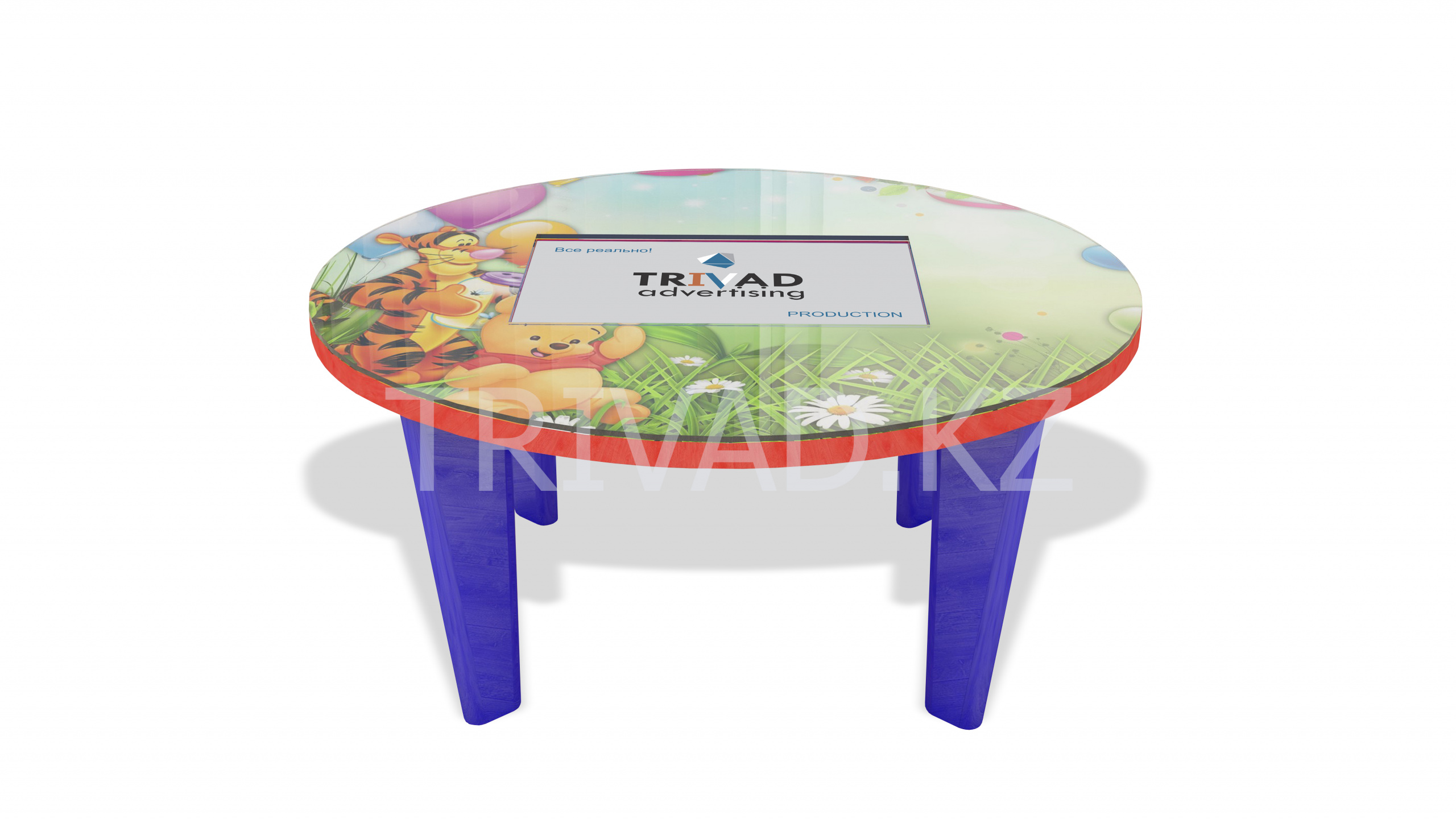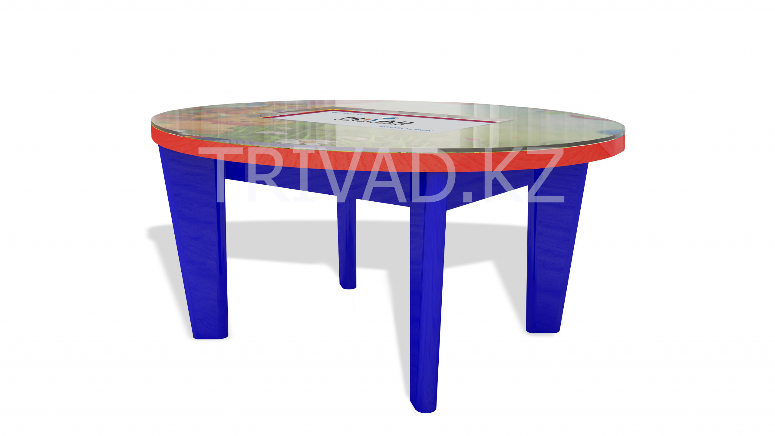 Материалы корпуса: Столешница из ЛДСП с закаткой торцов кромкой ПВХ, покрытие столешницы акрил 5 мм. с обратной полноцветной печатью УФ (любая картинка); ножки металлические с покраской мелкодисперсной порошковой полимерной краской (любые цвета).